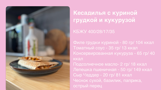 Кесадилья с куриной грудкой и кукурузой. Рецепт острой кесадильи на 400 калорий.