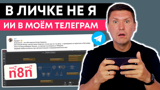 Подключил AI агента к своему Telegram профилю! Теперь он отвечает вместо меня (шаблон n8n)