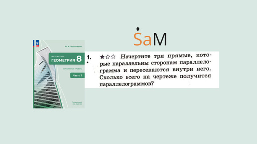 *Параллелограмм.Волчкевич.Начертите три прямые, которые параллельны сторонам параллелограмма и пересекаются внутри него. Сколько всего...