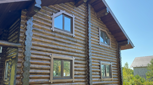 Шлифовка и покраска дома из рубленного бревна масленной лазурью . Теплый шов - герметик Ramsauer