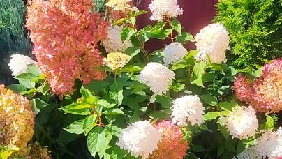 Как окрасились некоторые сорта гортензий осенью