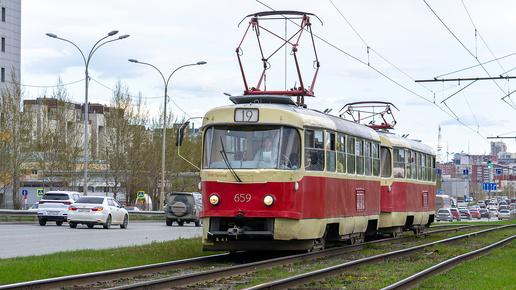 Поездка на трамвае Tatra T3SU, номер 659+663, маршрут 19