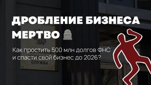 Дробление бизнеса мертво. Как простить 500 млн долгов ФНС и спасти свой бизнес до 2026?