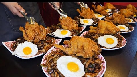 Лапша из черной фасоли с цельной курицей / корейской уличной едой