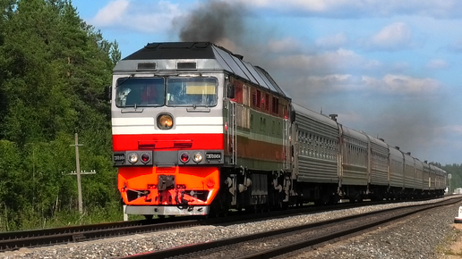 ТЭП70-0454 со скорым поездом Лабытнанги — Москва следует через о.п. Слободчиково