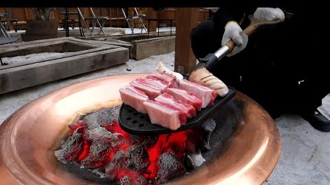 Жарьте свиную грудинку на большой лопате! особая свиная грудинка на гриле / корейская уличная еда