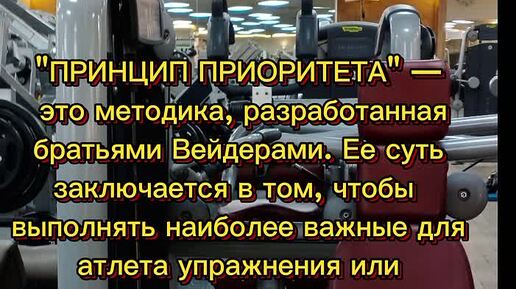 "ПРИНЦИП ПРИОРИТЕТА"-самую слабую часть тела начинайте тренировать первой, пока ваша энергия находится на самом высоком уровне.