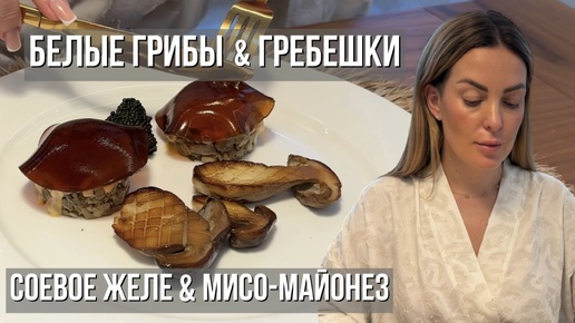 Белые грибы & гребешки с мисо-майонезом и соевым желе | Рецепт высокой кухни
