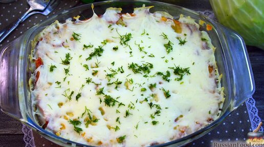 С сосисками быстро. Капустная запеканка с сосисками