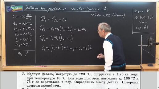 Задача на определение массы нагретой детали до заданной температуры, погруженной в воду