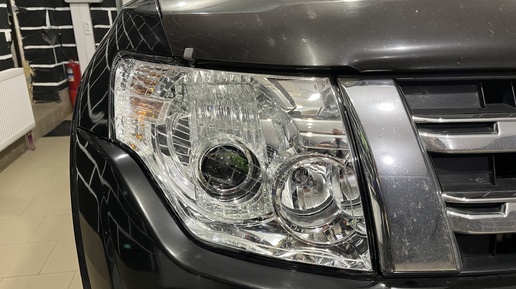 Mitsubishi Pajero 4 -ремонт фар, замена линз на диодные Expression Drive