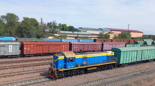 ТЭМ2 - Бишкек маневровая работа с составителем поездов.