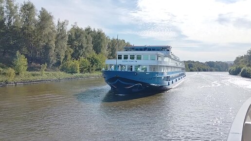 Теплоход Россия идёт по каналу