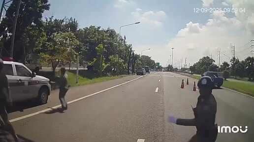 Находясь в состоянии шока, полицейский после сильнейшего удара встает и идет на своих ногах.