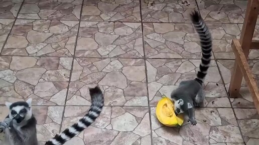 В Омском зоопарке показали, как лемуры лакомятся сладкой тыквой