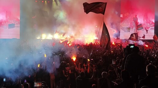 Группа Алиса исполняет композицию "Небо славян" на фестивале KKINCHEVFEST-2025 в Санкт-Петербурге.