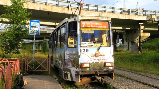Трамвай Ярославля 71-605 (КТМ-5М3) борт. №129 маршрут 7К на остановке "ТРЦ Рио"