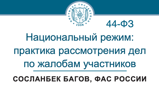 Национальный режим: практика рассмотрения дел по жалобам, 44-ФЗ – С.М. Багов, ФАС России, 18.09.2025
