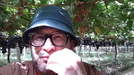 Андрей Понкратов пробует сорт винограда «Аватар»