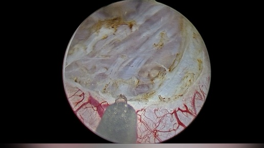 Лазерная en bloc резекция стенки млчевого пузыря с опухолью, иссечение рубцовой ткани и установка катетера-стента слева