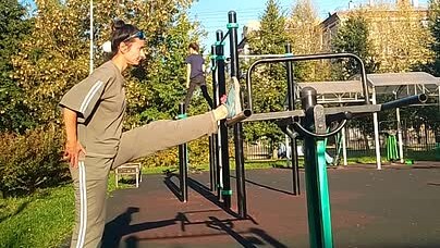 Моя растяжка на вертикальный шпагат на улице