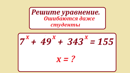 Решите показательное уравнение, которое не каждый студент решит. 7^x + 49^x + 343^x = 155