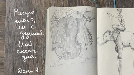 рисую циркового слона, полный провал по композиции, рисую скетчи каждый день