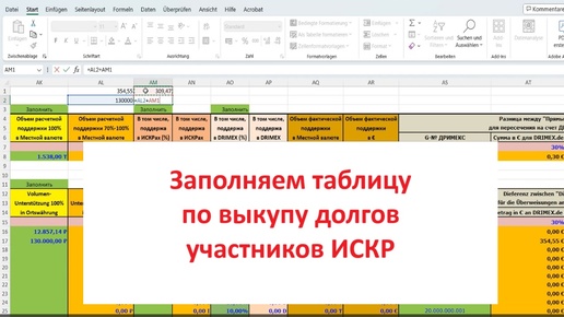 Заполняем таблицу по выкупу долгов участников ИСКР