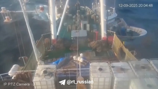 Момент, как судно протаранило и потопило траулер TAFRA 3 у берегов Мавритании, попал на видео