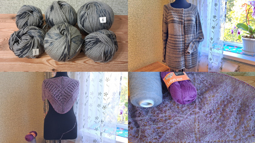 Кардиган готов!Вяжу простую косынку спицами из бобиного Итальянского мохера.