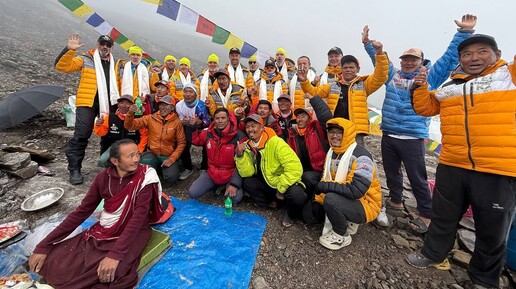 Обряд пуджи в базовом лагере экспедиции Клуба 8000 на Манаслу