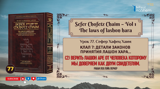 Далее: 𝟳𝟴. Сефер Хафец Хаим | Принятие Невинно Произнесенного Лашон Хара | Рабби Лев Лэйб Лернер