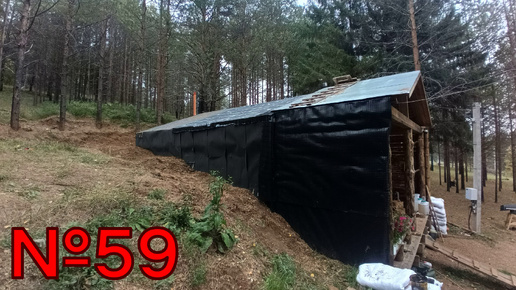 №59 Дом-землянка в тайге. Завершил одну стену террасы, защитил от влаги.