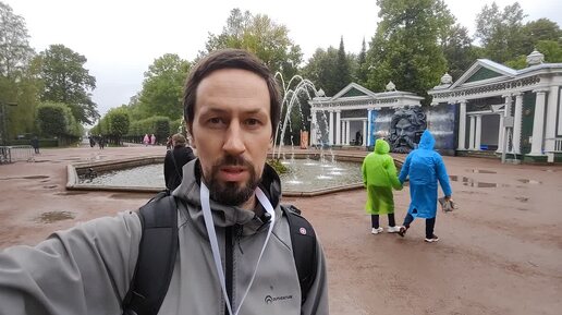 Прямое включение из Петергофа с осеннего фестиваля фонтанов, где вечером состоится свето-музыкальное представление с фейерверком