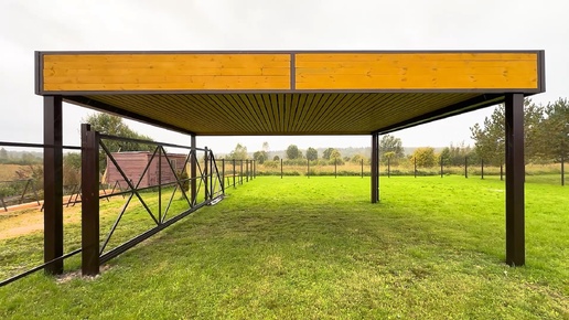 Навес для двух автомобилей с прямой крышей из профлиста 6х7