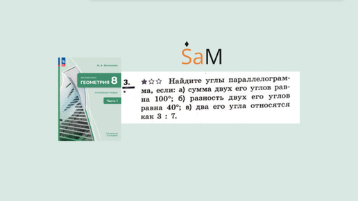 *Параллелограмм.Волчкевич. Найдите углы параллелограмма, если: а) сумма двух его углов равна 100; б) разность двух его углов равна 40;в