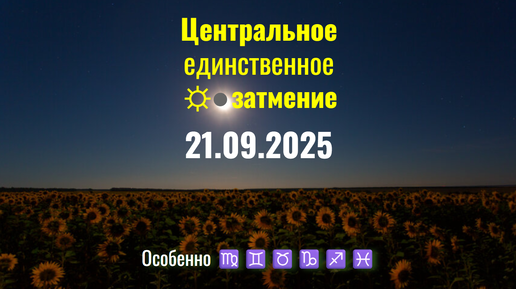 21.09.2025 Центральное и единственное ☼ затмение в 30°♍ Девы на противостоянии с Сатурном и Нептуном