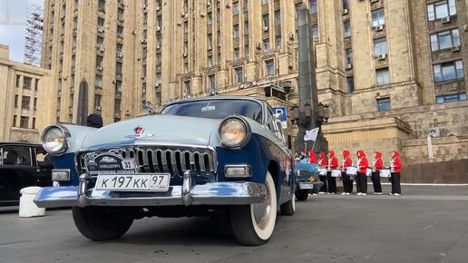 Пробег легендарных автомобилей советской эпохи, среди них: ГАЗ М-20 "Победа", ГАЗ-21-24 "Волга", Москвич-407, ГАЗ-13 "Чайка", ВАЗ-2101.