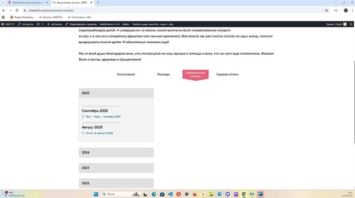 Работа ежемесячных отчетов