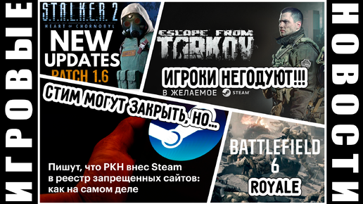 ИГРОВЫЕ НОВОСТИ с YURIY_MX | РКН пока не блокирует Steam, но это пока! Купи Тарков ещё раз! Battlefield 6 подарит нам BattleRoyale!