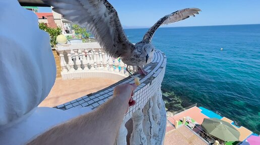 Кормим чайку с рук #чайка #кормимсрук #черноеморе #красивыйвид #море #отдых