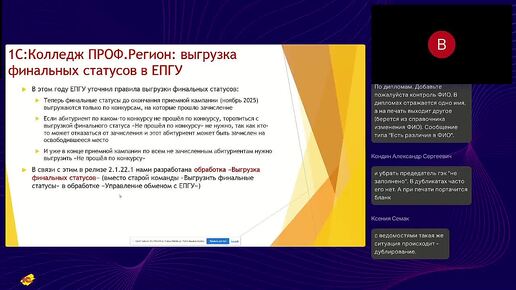 Выгрузка финальных статусов в ЕПГУ в "1С:Колледж" ПРОФ Регион