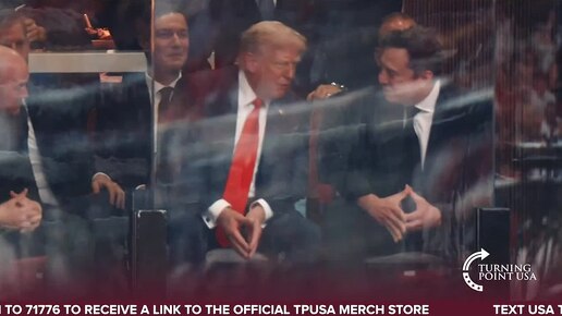 Трамп и Маск о чём-то беседуют на трибуне стадиона, где проходит церемония прощания с Кирком.