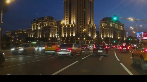 Вечерняя прогулка по Москве продолжается, и город словно оживает в огнях и тенях.
