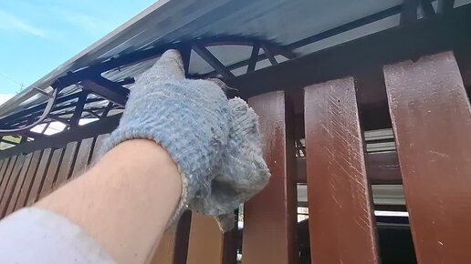 Установил водосток на арочный навес из профильной трубы под автомобиль.