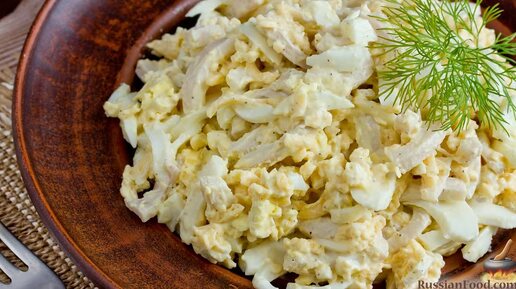 Всего лишь три ингредиента. Салат из кальмаров, яиц и сыра