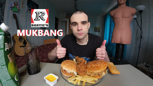 МУКБАНГ БУРГЕРЫ ИЗ ROSTIC`S / ШЕФ БУРГЕР / БИГ МАЭСТРО / КАРТОШКА ФРИ / СОУС СЫРНЫЙ / ПИРОЖОК МАНГО КРЕМ ЧИЗ / MUKBANG ИТИНГ АСМР