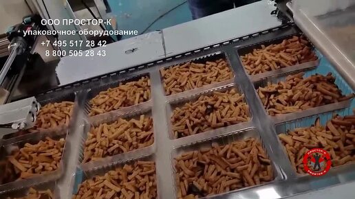 Упаковка сухариков на термоформовочной машине от компании ПРОСТОР-К