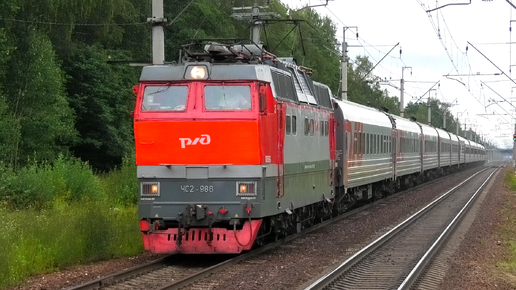 ЧС2Т-986 с фирменным поездом "Новокузнецк" Новокузнецк — Санкт-Петербург следует через о.п. 45 км