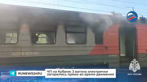 ЧП на Кубани: 3 вагона электрички загорелись прямо во время движения